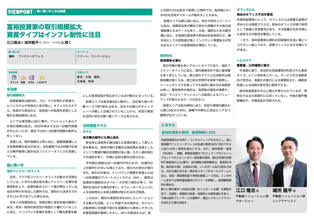 月刊プロパティマネジメント2025年9月号に、不動産ソリューション部による海外富裕層投資動向の分析が掲載